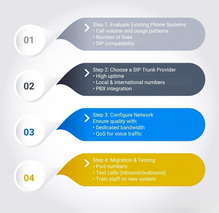 By auditing your current system, selecting a reliable provider, planning migration carefully, and training staff, SMEs can implement SIP trunking quickly and confidently. This results in immediate savings, improved efficiency, and a future-ready communication system.